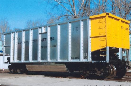 C80型铝合金运煤敞车是大秦线2万吨重载列车运输煤炭用的专用敞车。该车能与秦皇岛煤码头的三、四期翻车机及附属设备相匹配,实现不摘钩连续翻卸作业;并能适应环形装车、直进直出装车、解体装车作业及运行时机车动力集中牵引要求。